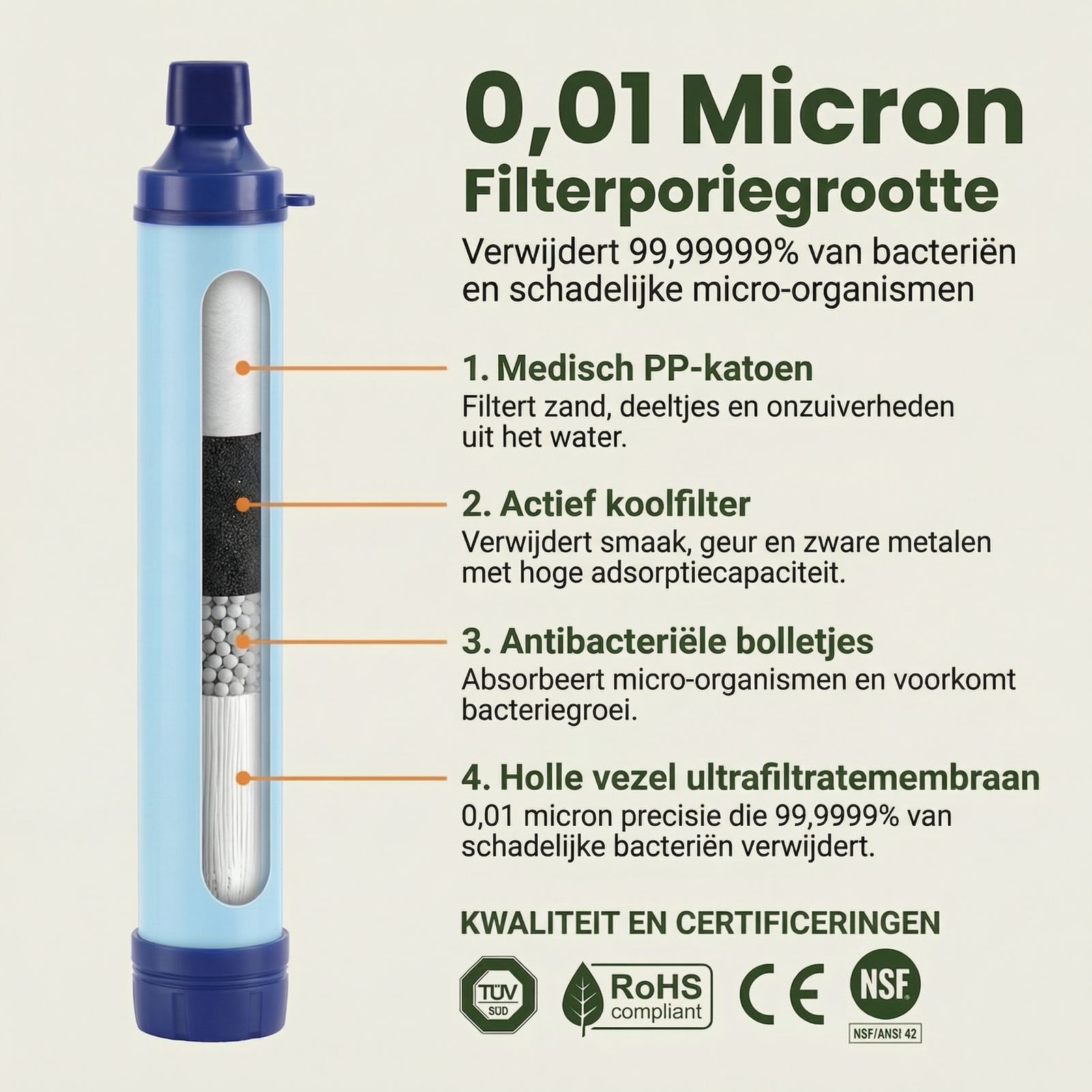 - TÜV SÜD & SGS-gecertificeerd: Maximale veiligheid met 0,01 micron ultrafiltrering die bacteriën en parasieten verwijdert.